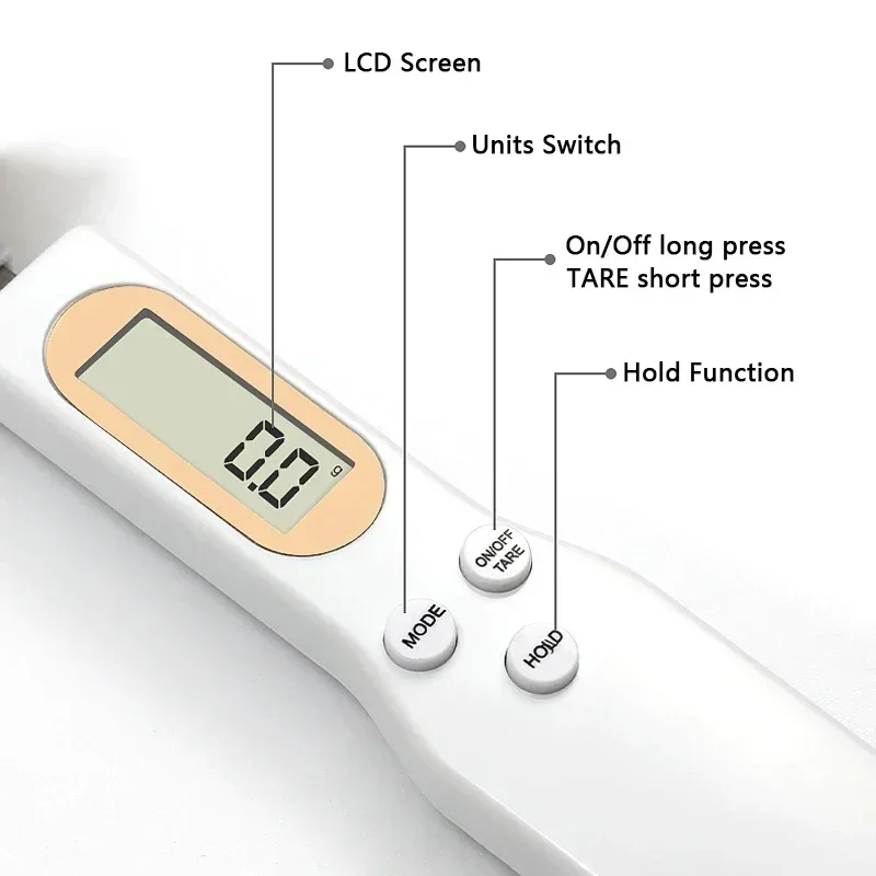Digital spoon scale with LCD display.