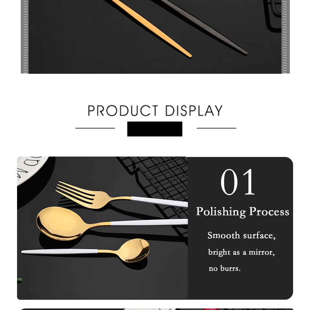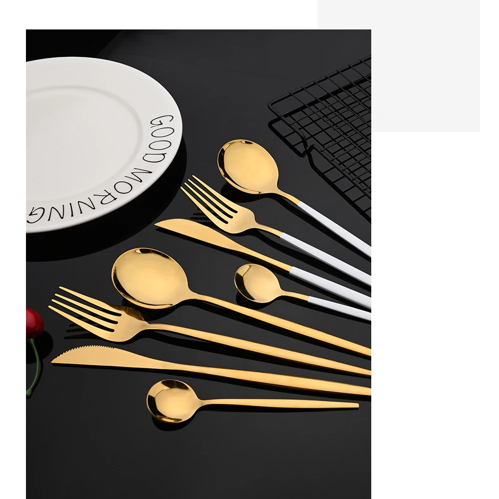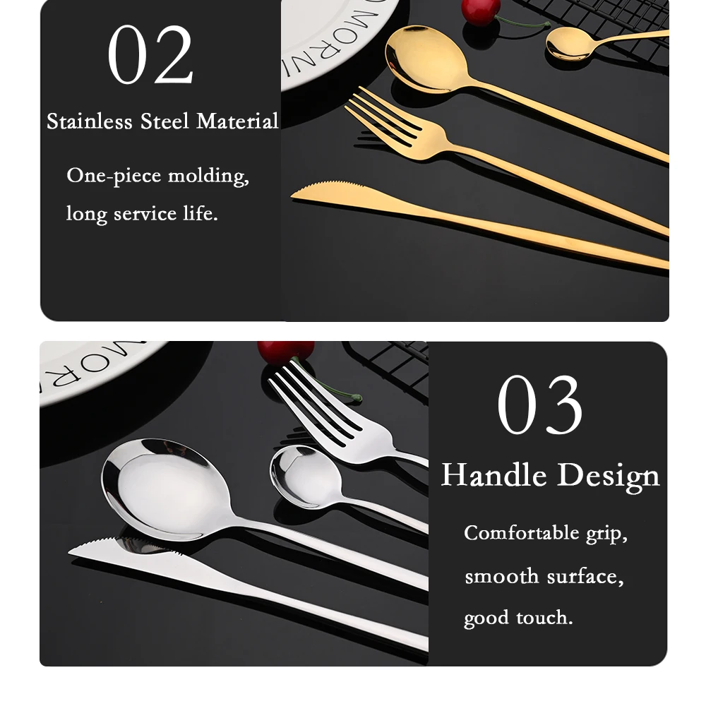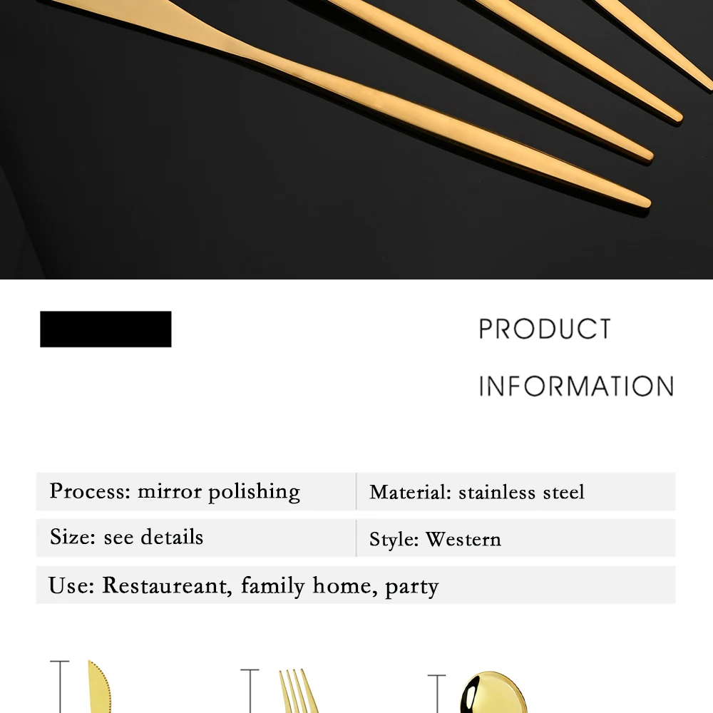 SPECIFICATIONSBrand Name: None,uniturckyCertification: CE / EU,CIQ,EEC,LFGB,SGSDinnerware Type: Dinnerware SetsDishwasher safe: YesFeature: Eco-FriendlyHign-concerned Chemical: NoneMaterial: Stainless SteelMetal Type: Stainless Steel,STAINLESS STEELModel Number: Stainless SteelNumber of Users: >10Origin: Mainland ChinaPattern Type: SolidProduction: Spoon/Fork/Knife KitStyle: WesternTechnics: PigmentedUse: Hotels/Restaurants/Family homes/Party modname=ckeditor modname=images&cols=1&colspace=0&rowspace=0&align=center