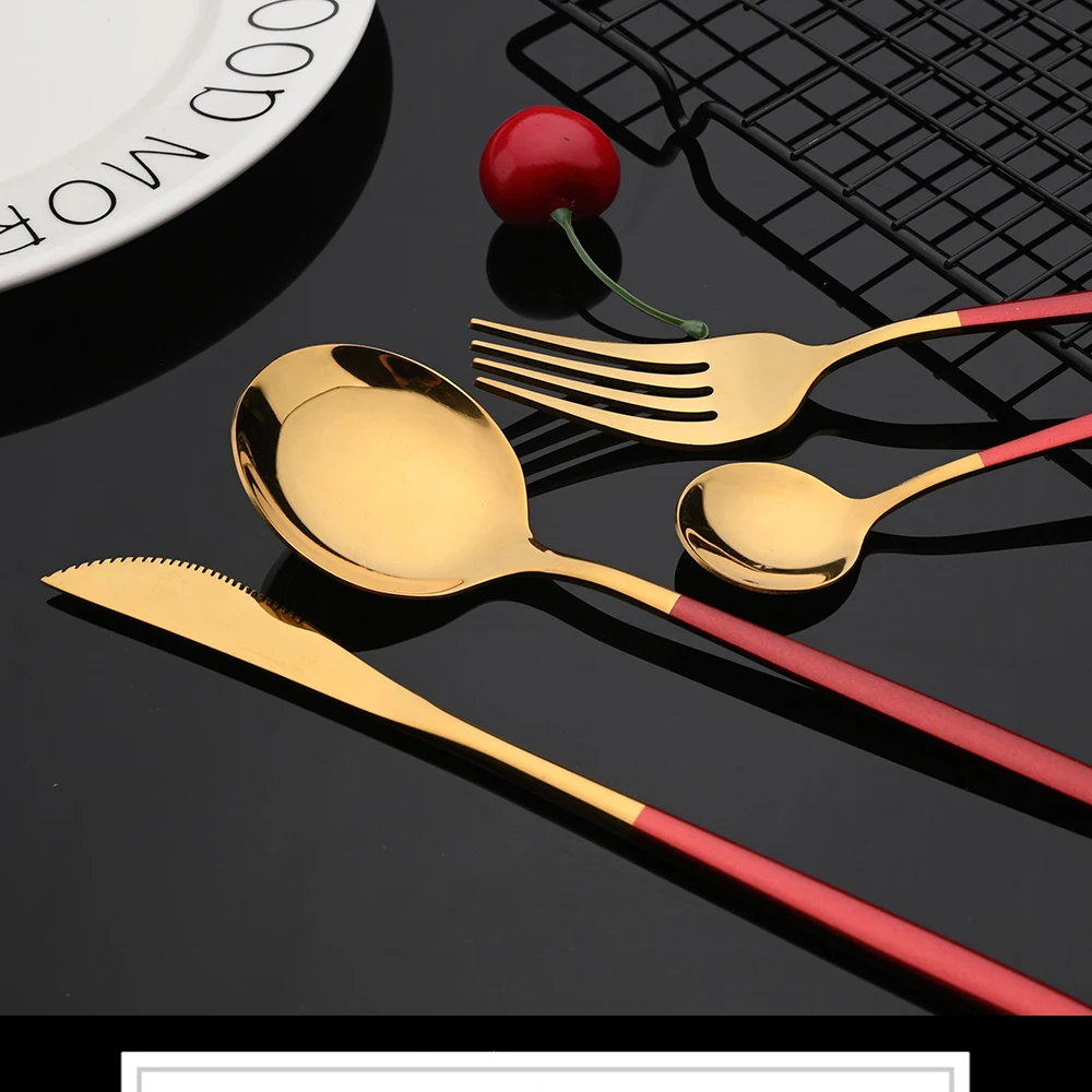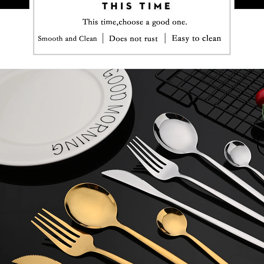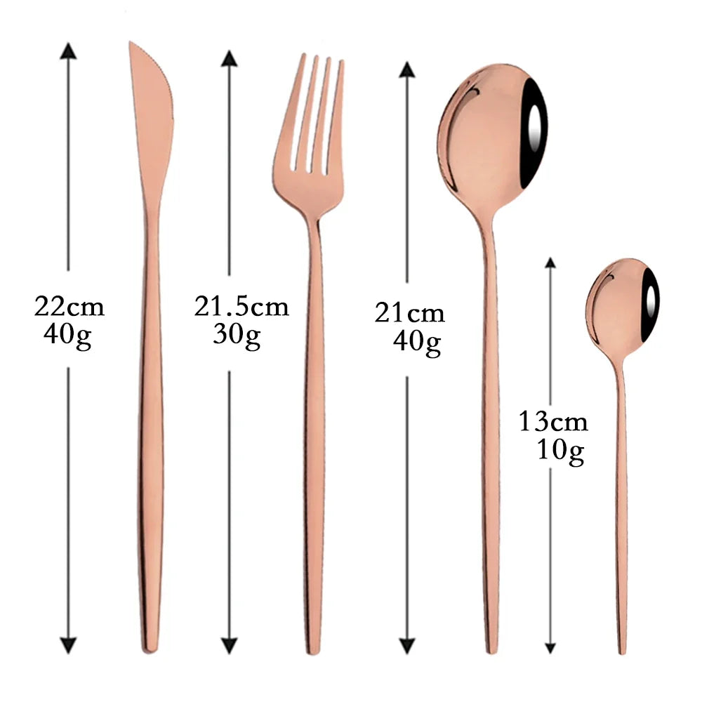 Mirror Rose Gold Flatware Cutlery Set Sainless Steel Home Dinnerware Party Fork Spoon Dessert Knife Kitchen Dinner Tableware Set